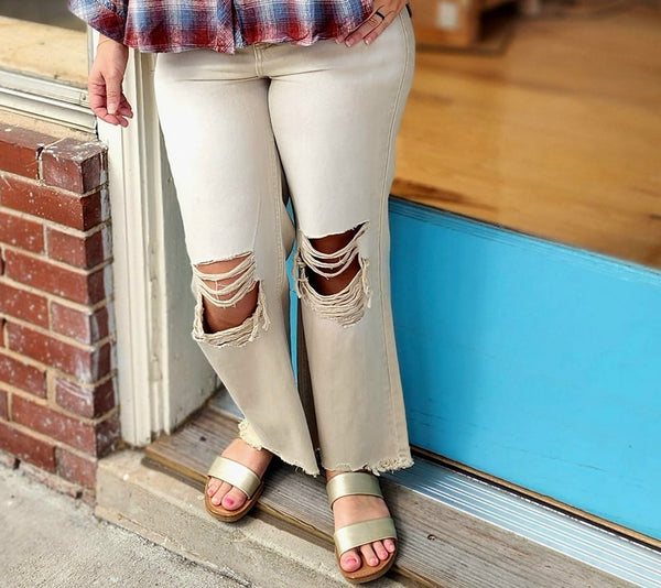 WASHED DISTRESSED KNEE AND HEM CROPPED PANTS - DISTRESSED KNEE AND HEM *Each item is unique, expect variations in color and finishing FRONT RISE: 11.25", INSEAM: 26.5" approx. LEG OPENING: 20" approx.