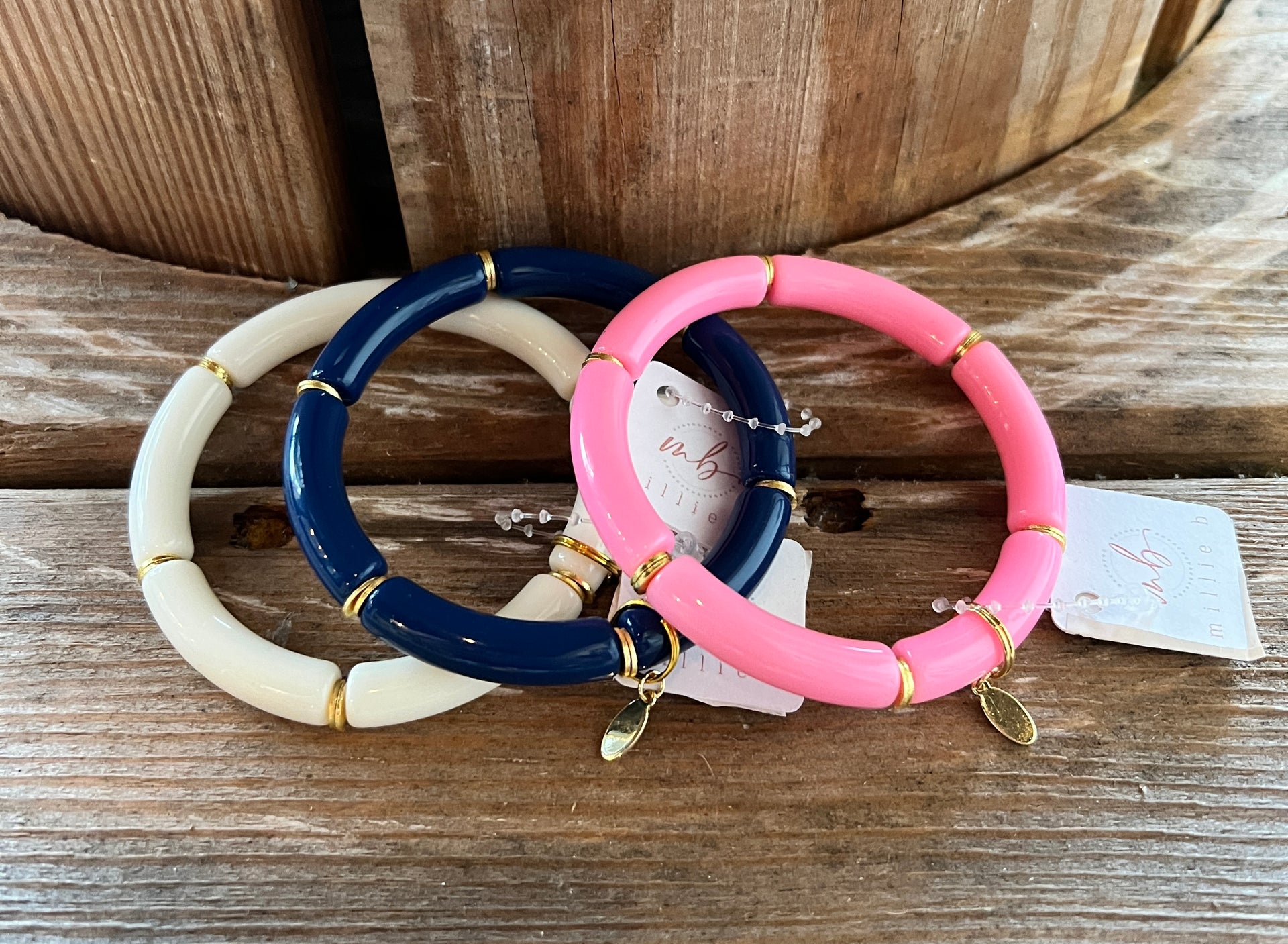 Bracelets measure around a standard size 7. Email us for custom sizes.
