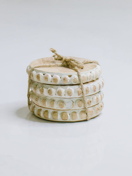 Meet our Beaded Wood Coasters, a perfect blend of simplicity and elegance, featuring unique beaded edges and beautifully crafted wood that will complement any coffee table. These coasters add a touch of rustic charm to your decor while providing practical protection for your surfaces. Ideal for everyday use or as a thoughtful gift, the Beaded Wood Coasters are a timeless addition to any home.