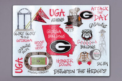 Show your Dawg pride in the kitchen or on game day with this stylish UGA Tempered Glass Board! Perfect for prepping, serving, or displaying, this board features the iconic Georgia "G" logo on durable, shatter-resistant tempered glass. It’s heat-resistant, non-porous, and easy to clean—making it both functional and decorative. A winning addition to any Bulldog fan's kitchen, tailgate, or countertop!