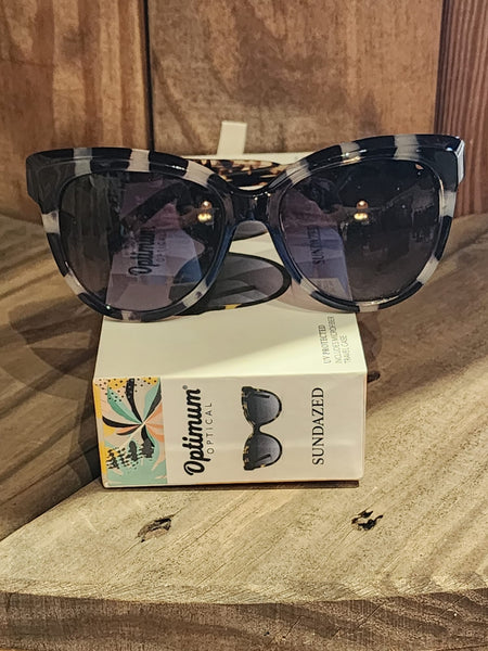 Loving these new sunglasses with a distinct personality. The sunglasses are boxed and feature UV protection, enhanced durability, and a uniquely patterned microfiber cleaning case.