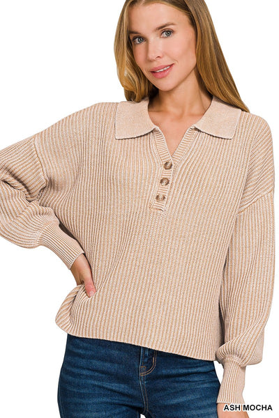 Casual comfort meets timeless style in this soft, lightweight henley sweater. Featuring a classic button-front neckline, relaxed fit, and ribbed cuffs, it’s the perfect throw-on piece for effortless everyday wear. The ash mocha hue adds a warm, neutral tone that pairs beautifully with denim, leggings, or your favorite lounge pants.