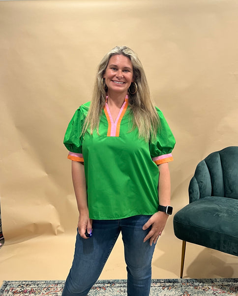 This Solid Short Bubble Sleeve Top is a fresh take on a classic silhouette, featuring playful puffed sleeves that add a touch of drama and fun. The multicolor band finish along the cuffs adds a pop of vibrant contrast, making it a standout piece. The solid base makes it easy to pair with any bottom, while the unique sleeve detail gives it a trendy, yet effortless look. Perfect for casual outings, brunch dates, or adding a bit of flair to your everyday wardrobe.