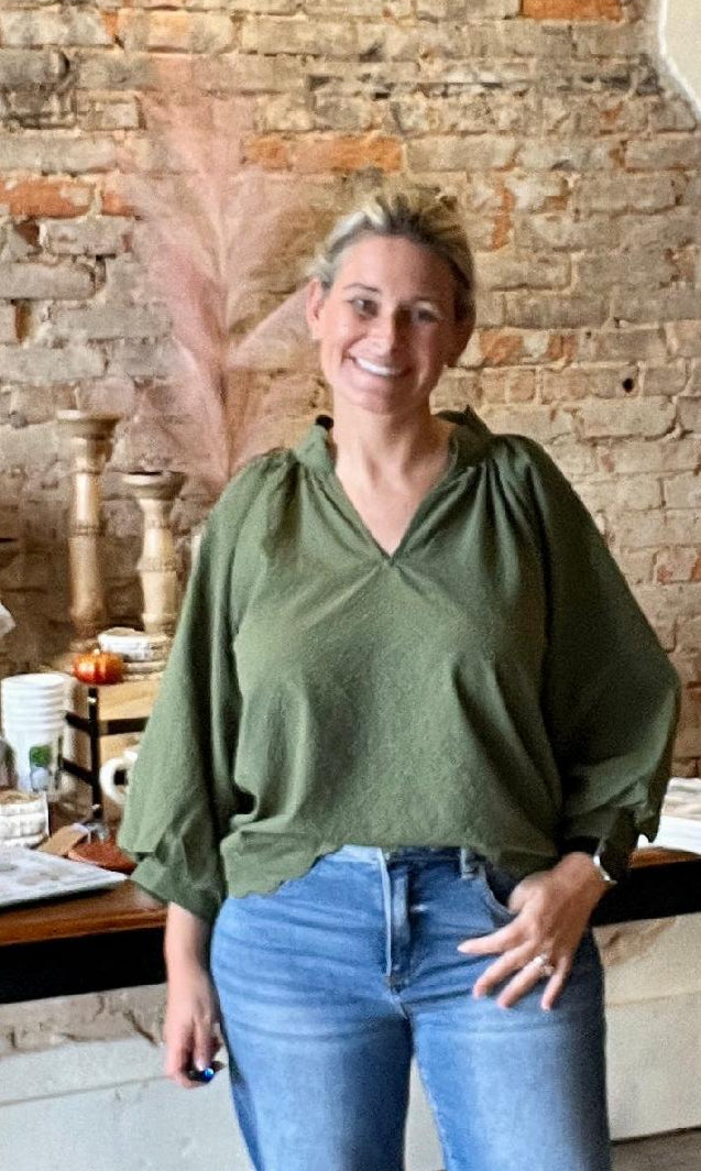 Effortlessly chic, the Olive Grove Textured Blouse is a fall essential. Designed in a rich olive hue, this top features a subtle textured fabric that adds depth and style. The relaxed fit pairs beautifully with the flowy balloon sleeves and a flattering v-neckline, making it both comfortable and stylish. Perfect for layering or wearing solo, this blouse is a versatile piece you’ll reach for all season long.