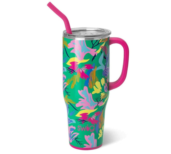 Hydrating has never been easier with our 40oz Mega Mug! The cup holder friendly frame, comfort-grip handle and flexi-tip straw with a plastic straw insert come together to create your new favorite Swig!
