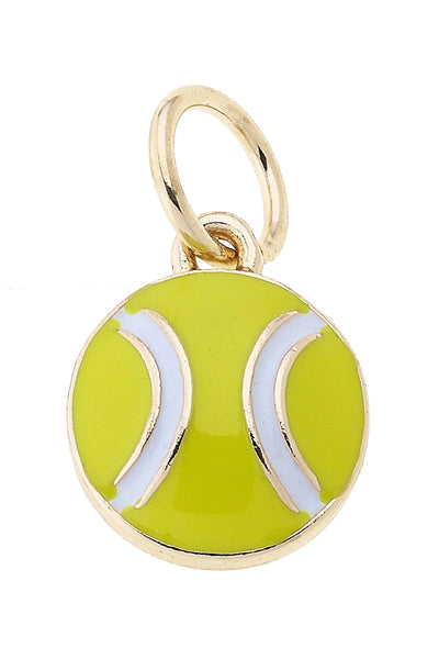The Mini Enamel Tennis Ball Charm in Neon Yellow features a miniature tennis ball design in neon yellow enamel. This charm is perfect for tennis lovers or anyone who enjoys the sport.
